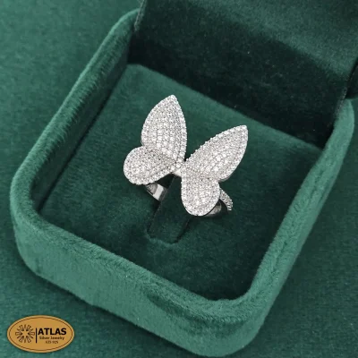 انگشتر نقره پروانه با نگین های برلیان 4.2 گرمی نقره اصل 925