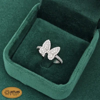 انگشتر نقره پروانه با نگین های برلیان 2.9 گرمی نقره اصل 925