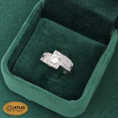 انگشتر نقره زنانه مجلسی با نگین های برلیان و باگت 6.8 گرمی نقره اصل 925