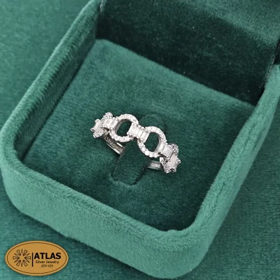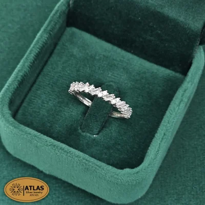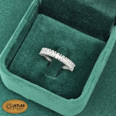 انگشتر نقره زنانه مجلسی با نگین های باگت 5.3 گرمی نقره اصل 925
