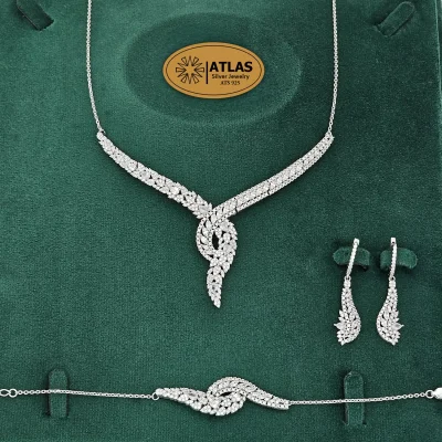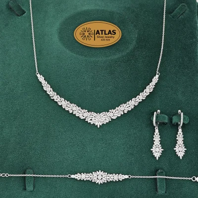 سرویس نقره جواهری زنانه مجلسی با نگین های برلیان و مارکیز 31.2 گرمی نقره اصل 925