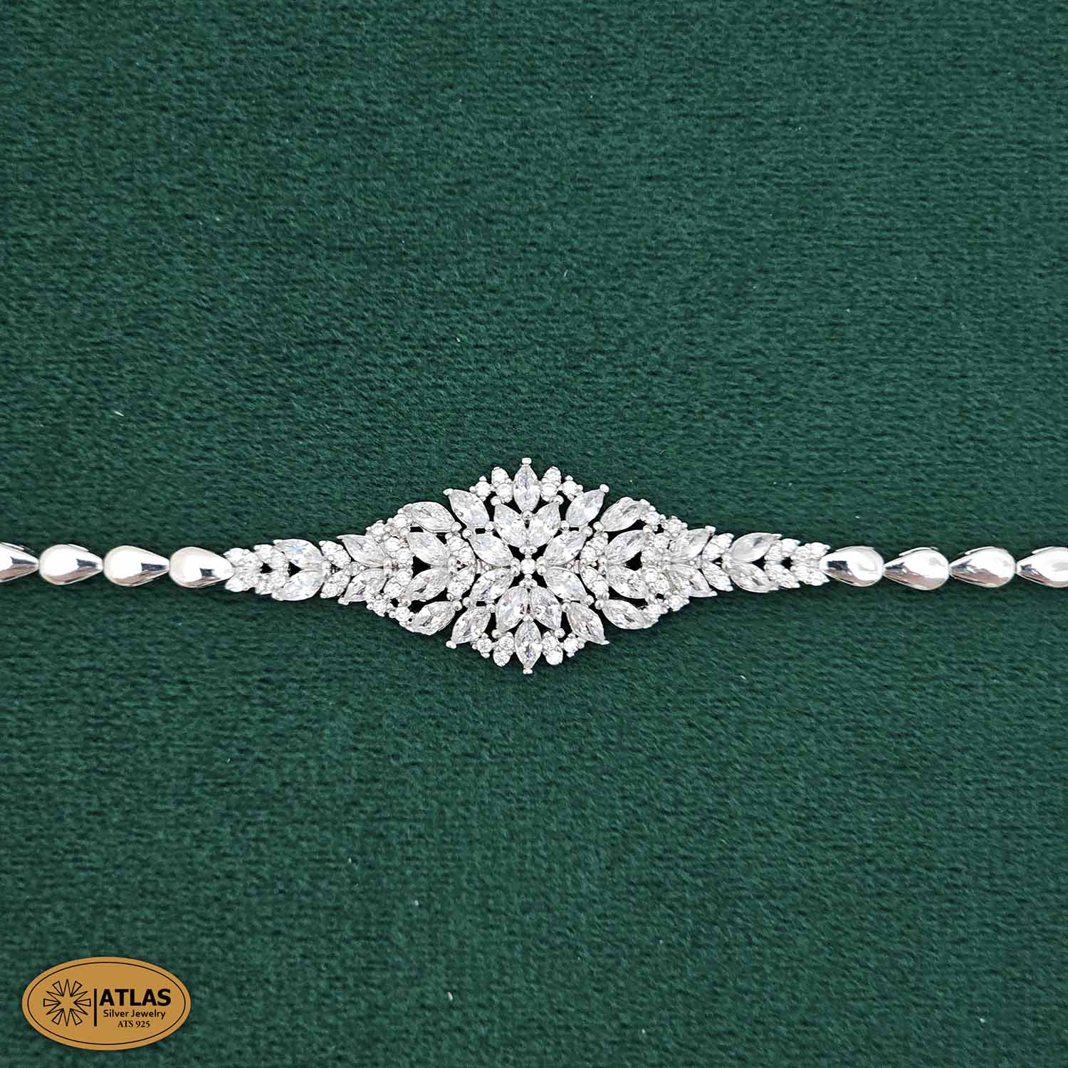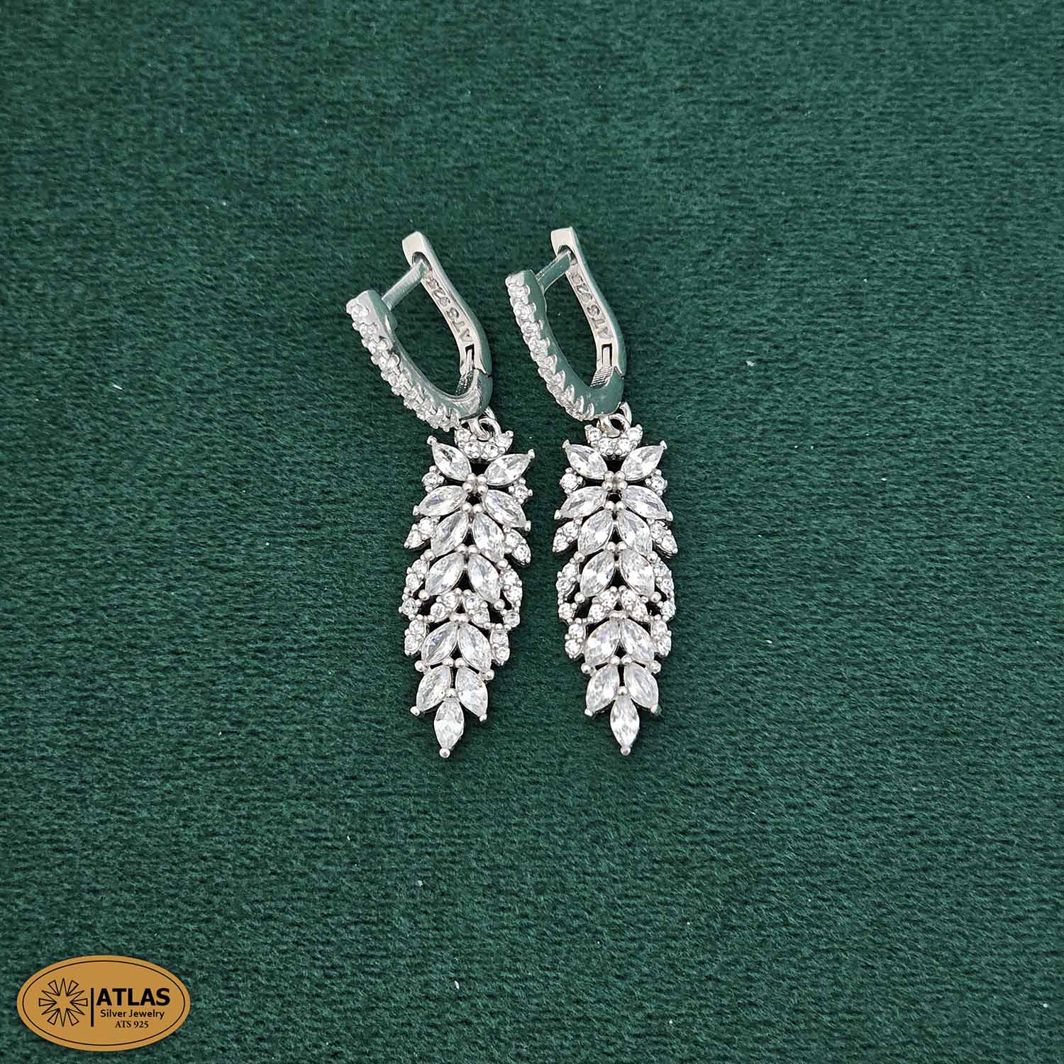 سرویس نقره جواهری زنانه مجلسی نگین های مارکیز و برلیان 34 گرمی نقره اصل 925