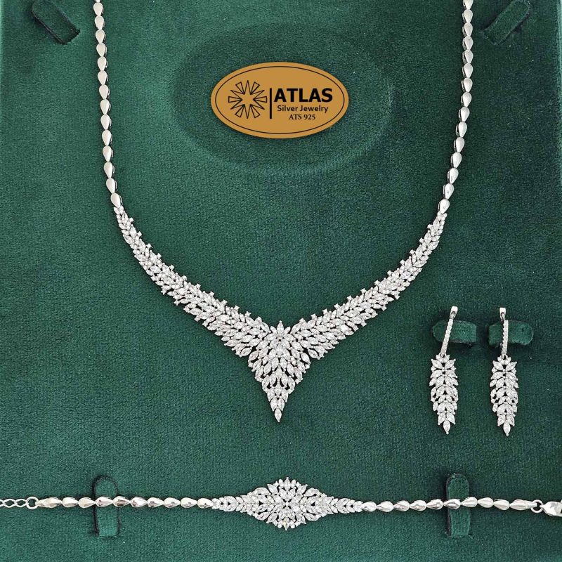 سرویس نقره جواهری زنانه مجلسی مدل SJ64