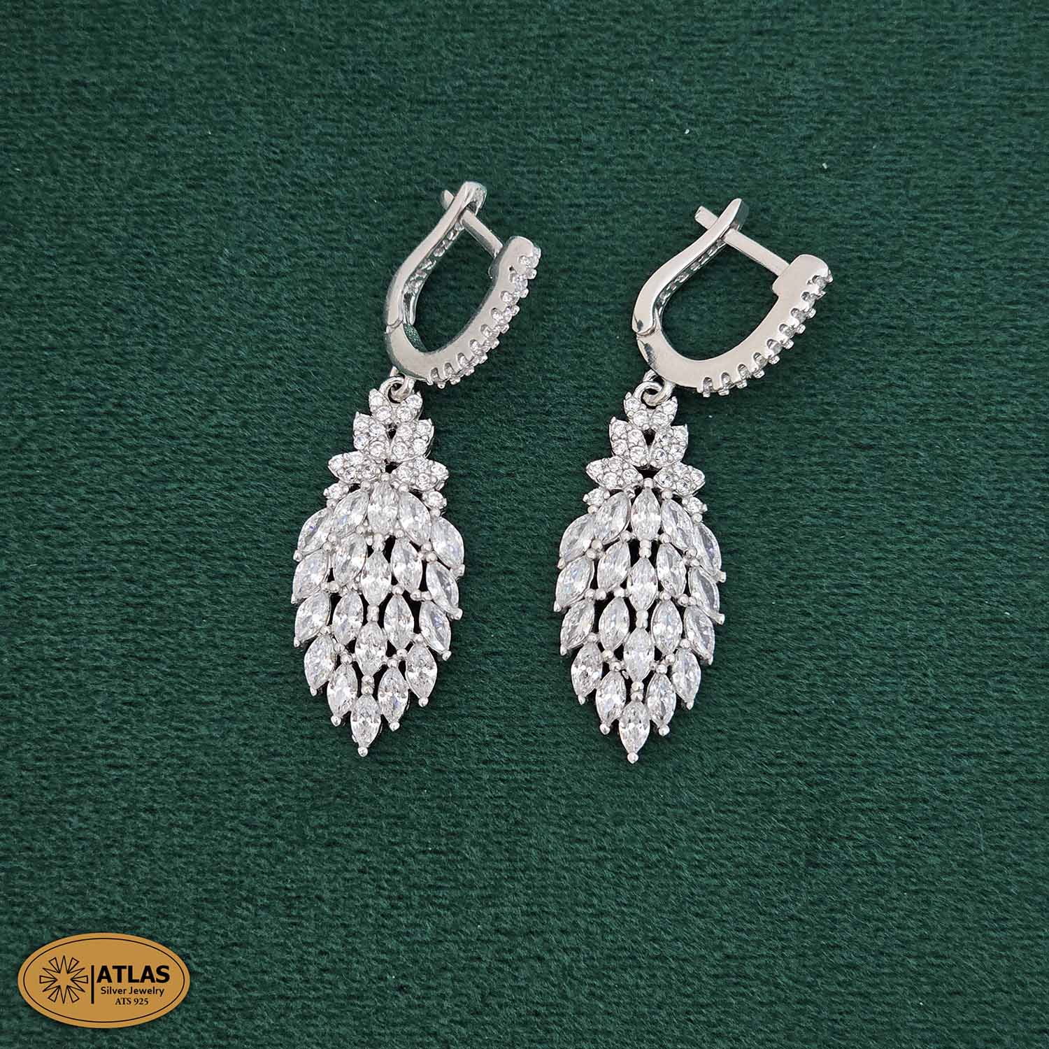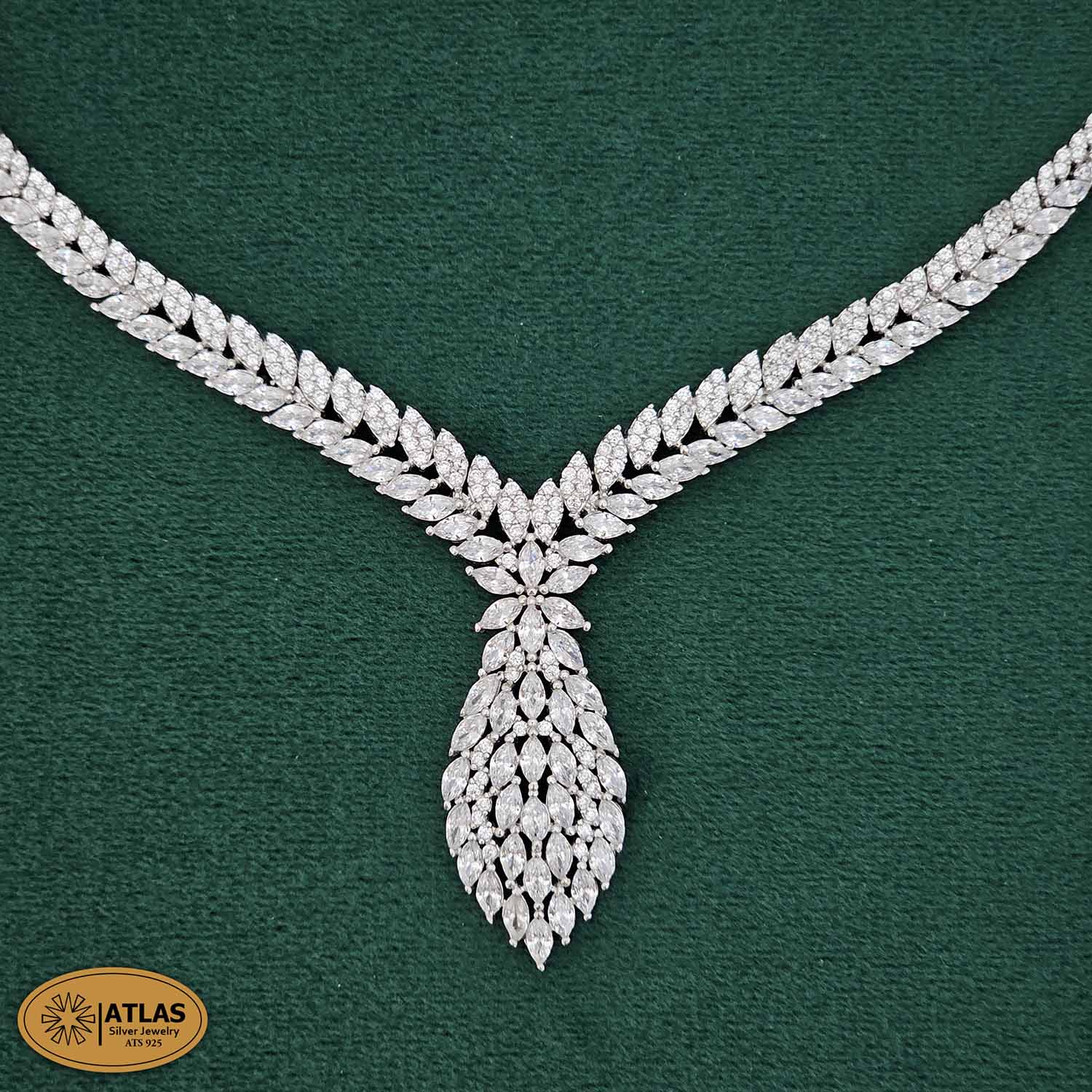 سرویس نقره جواهری زنانه مجلسی نگین های مارکیز و برلیان 33.3 گرمی نقره اصل 925
