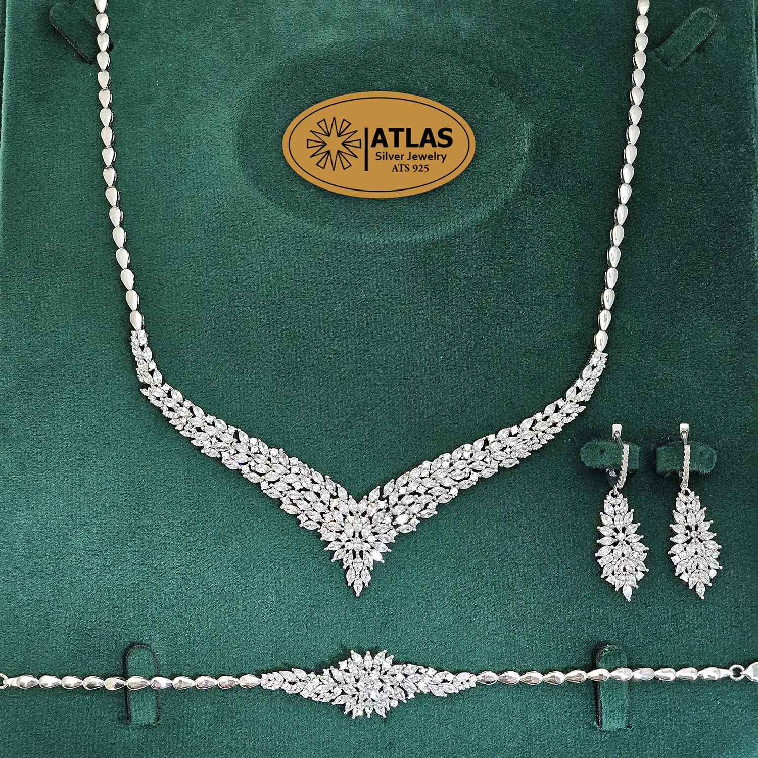 سرویس نقره جواهری زنانه مجلسی مدل SJ67