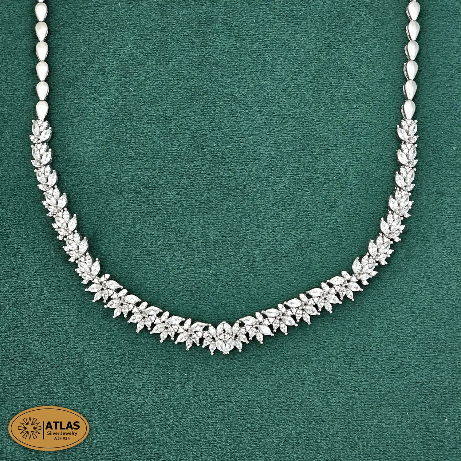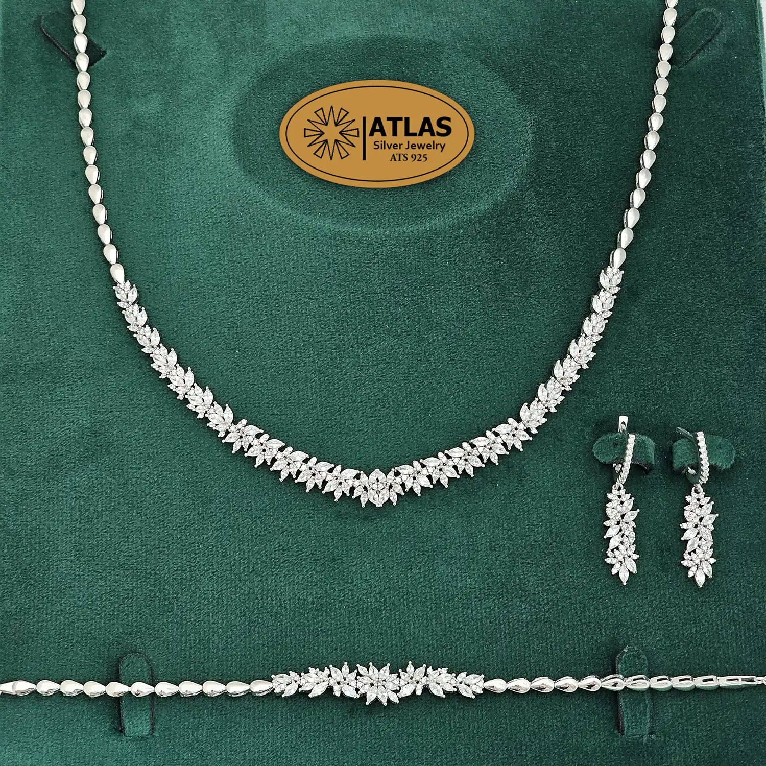 سرویس نقره جواهری زنانه مجلسی نگین های مارکیز و برلیان 31.9 گرمی نقره اصل 925