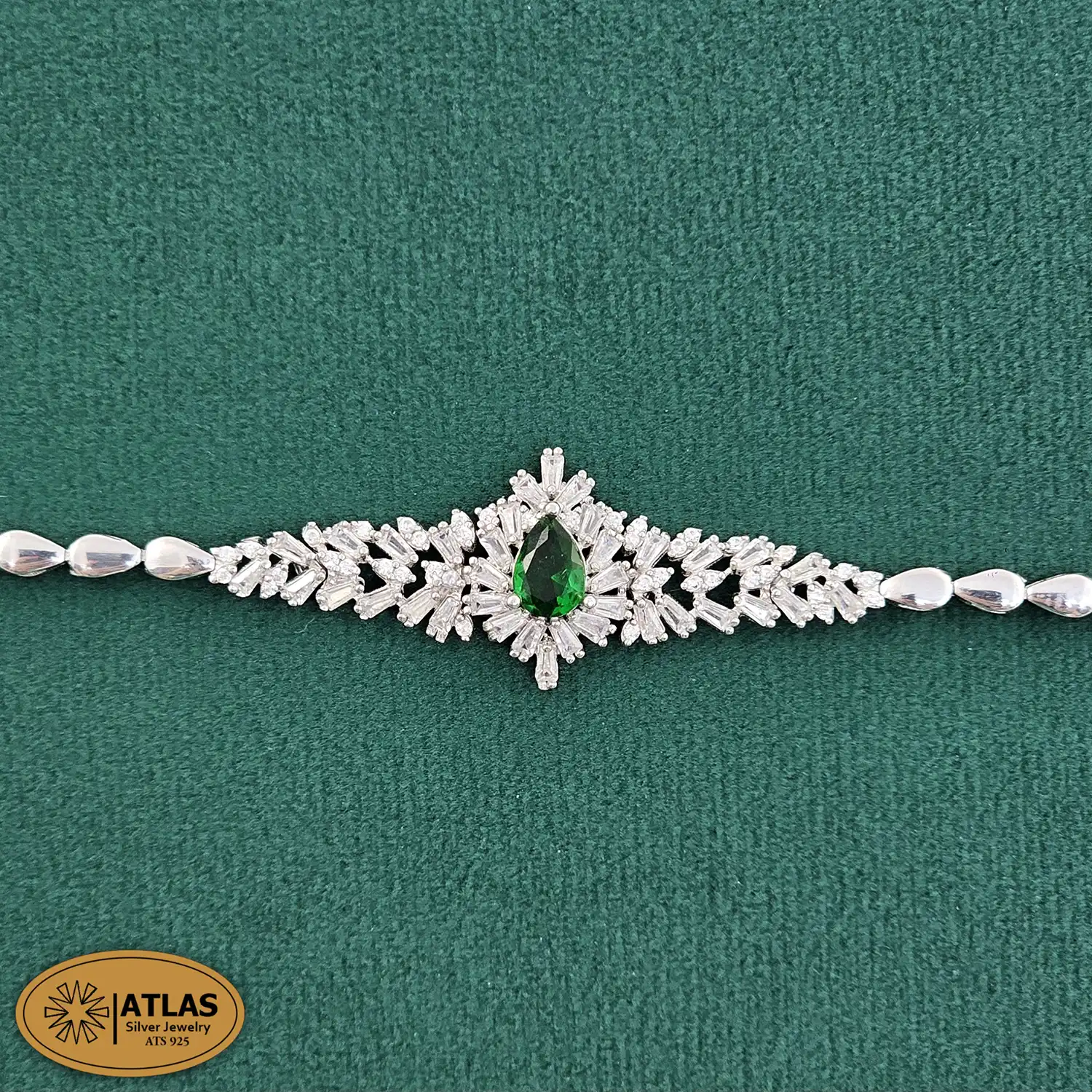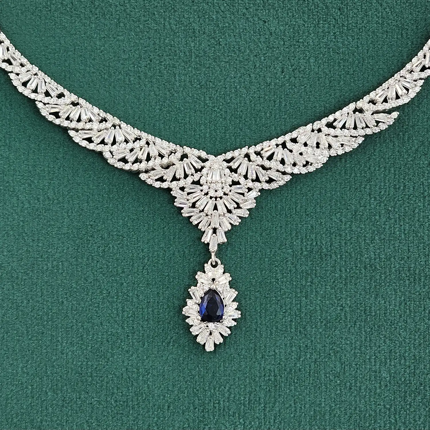 سرویس نقره جواهری زنانه مجلسی با نگین های برلیان و باگت 32.5 گرمی نقره اصل 925