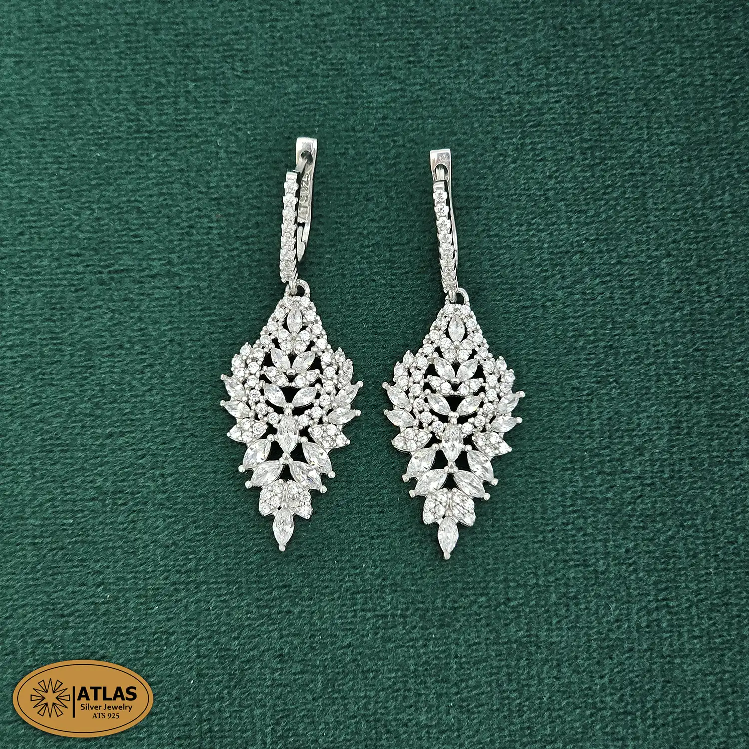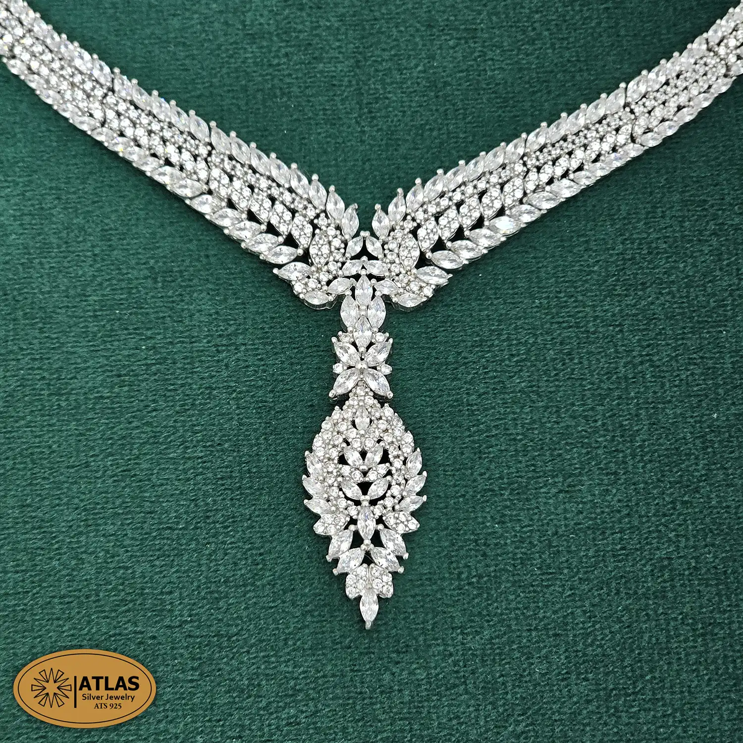 سرویس نقره جواهری زنانه مجلسی نگین های مارکیز و برلیان 35 گرمی نقره اصل 925