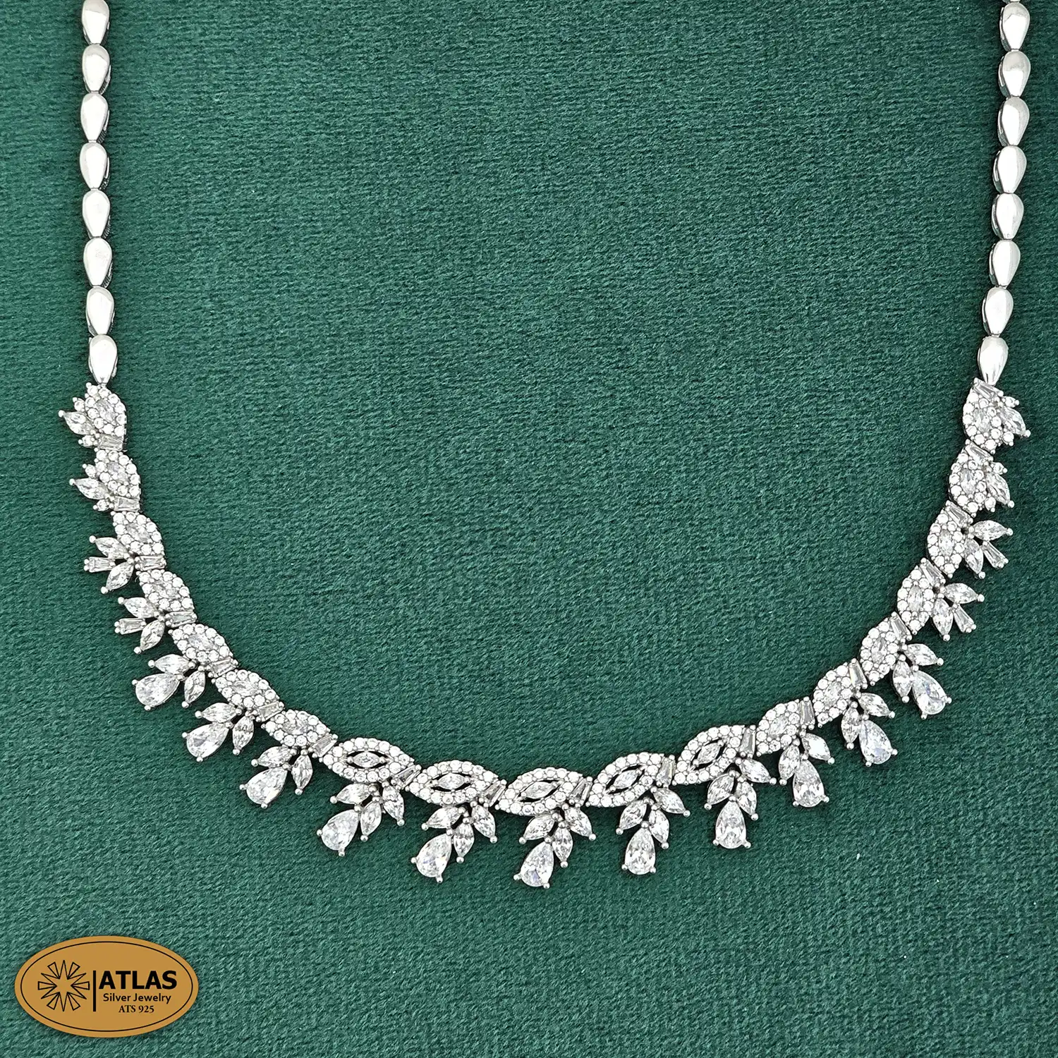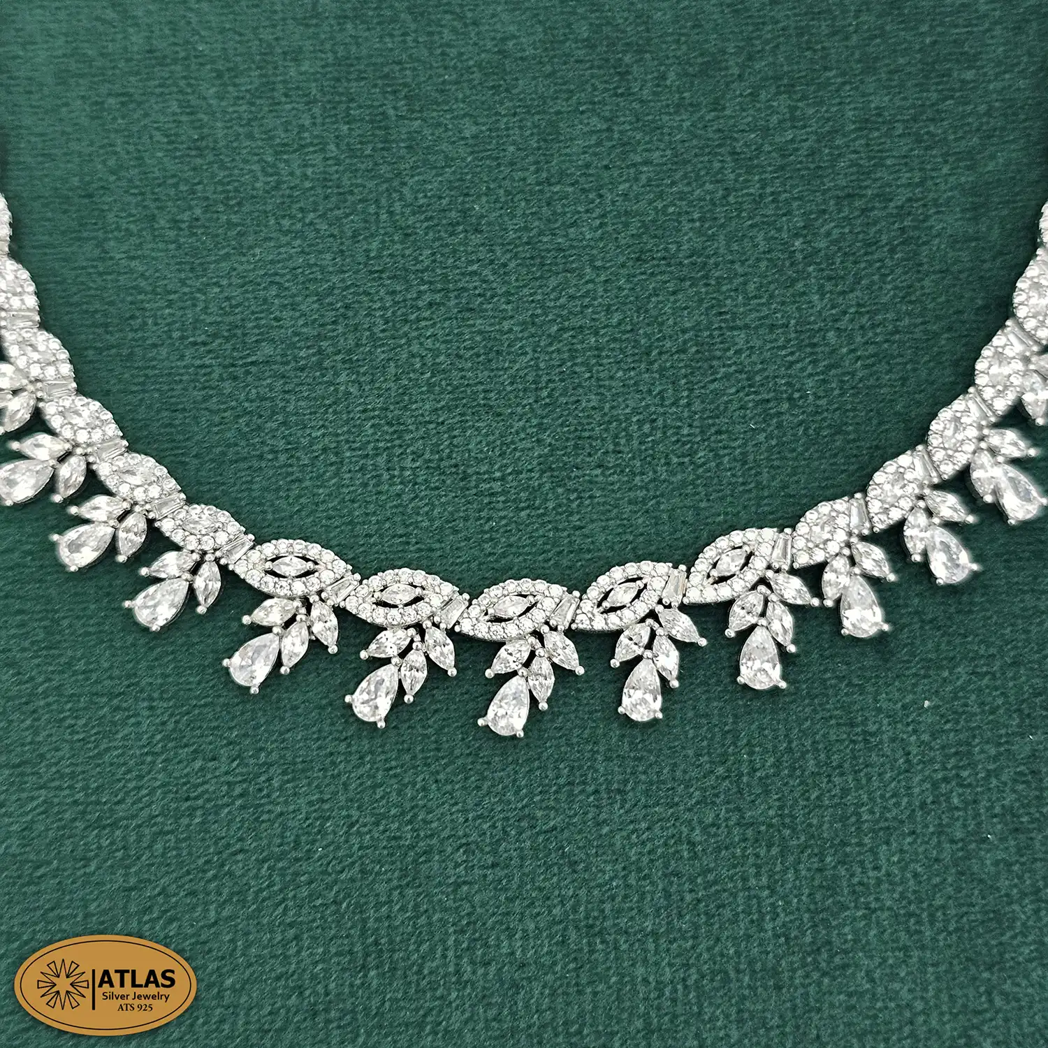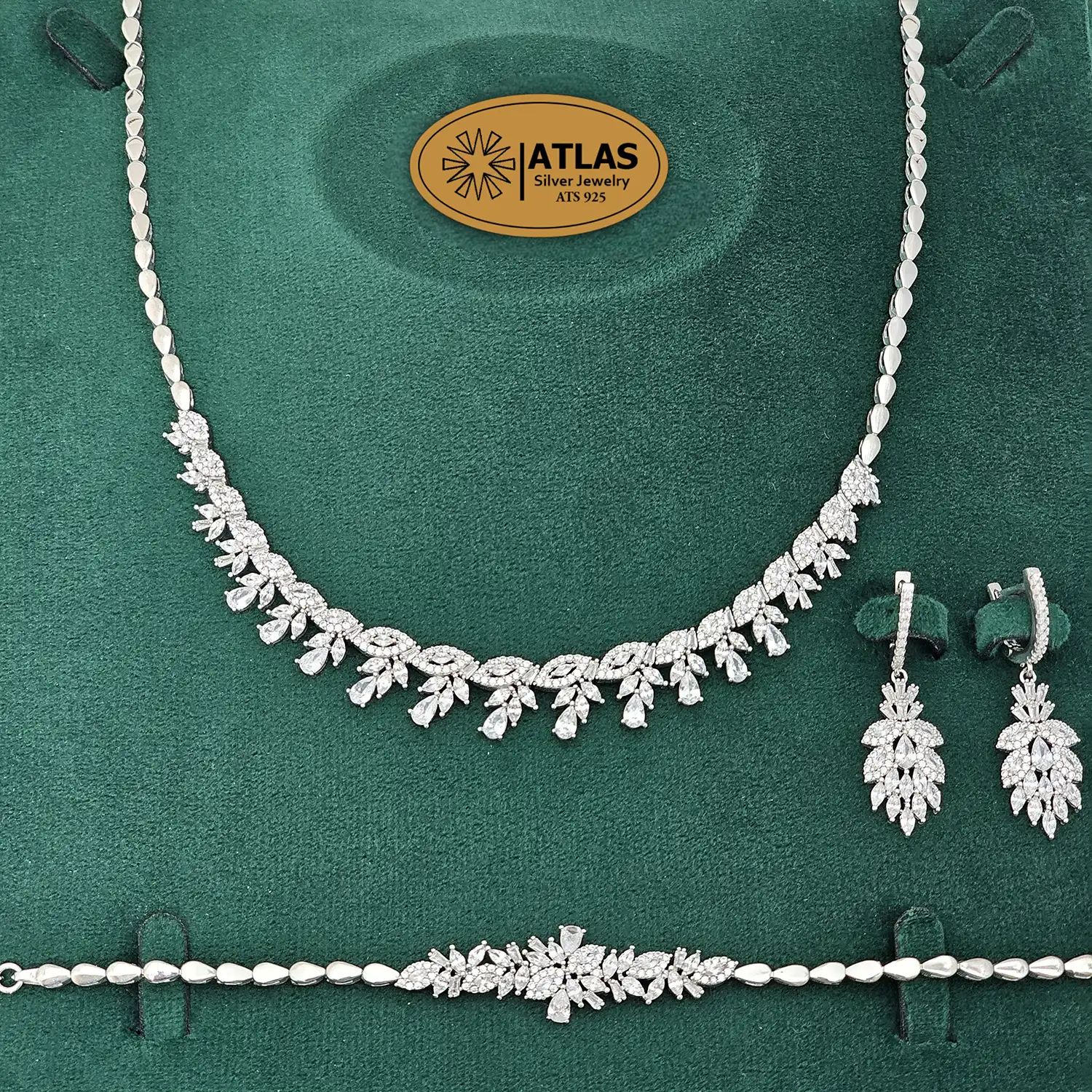 سرویس نقره جواهری زنانه مجلسی با نگین های برلیان ،مارکیز و اشک 33.4 گرمی نقره اصل 925
