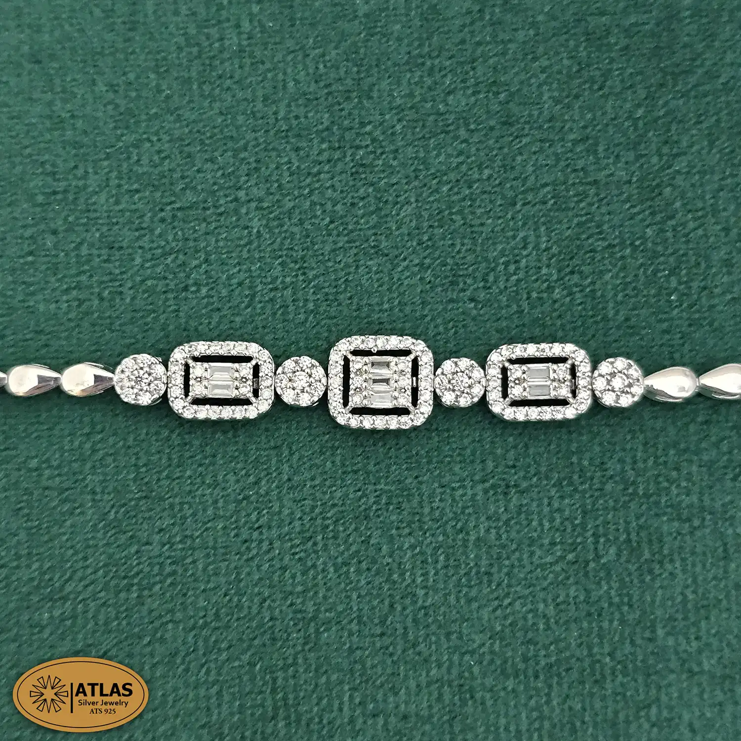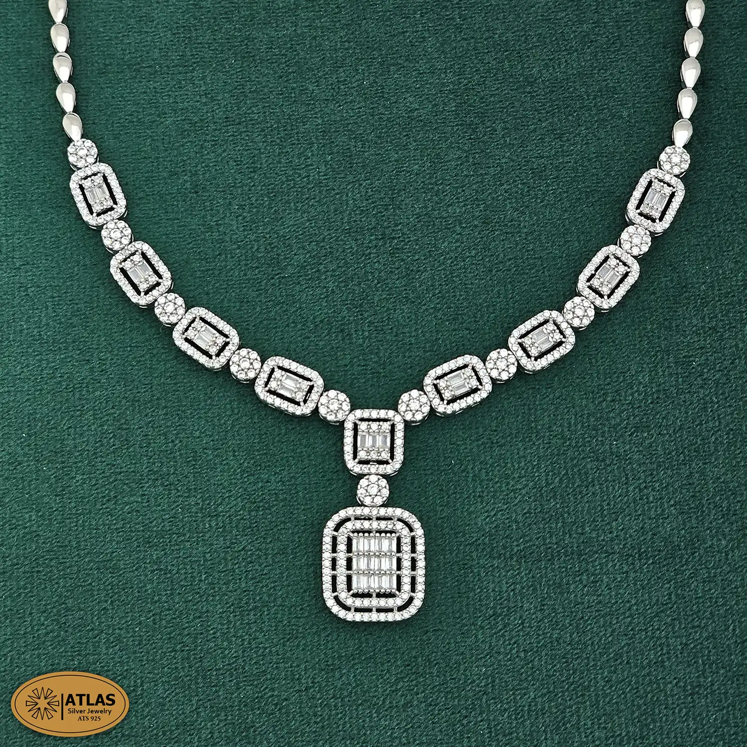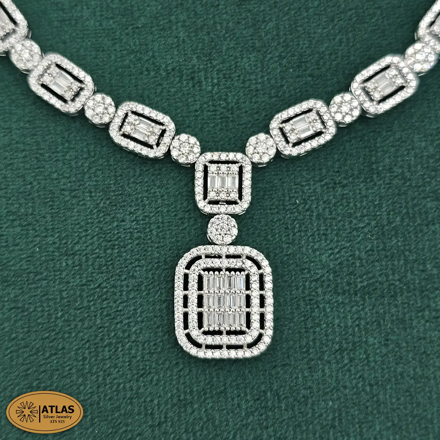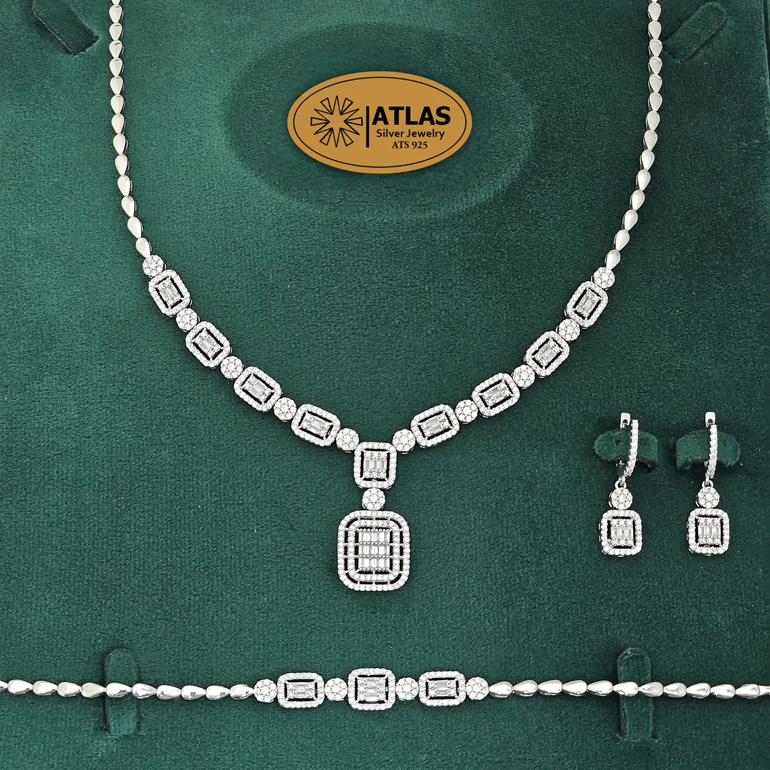 سرویس نقره جواهری زنانه امرالدکات با نگین های برلیان و باگت 32 گرمی نقره اصل 925