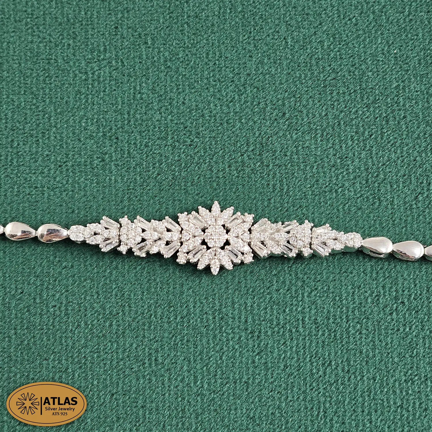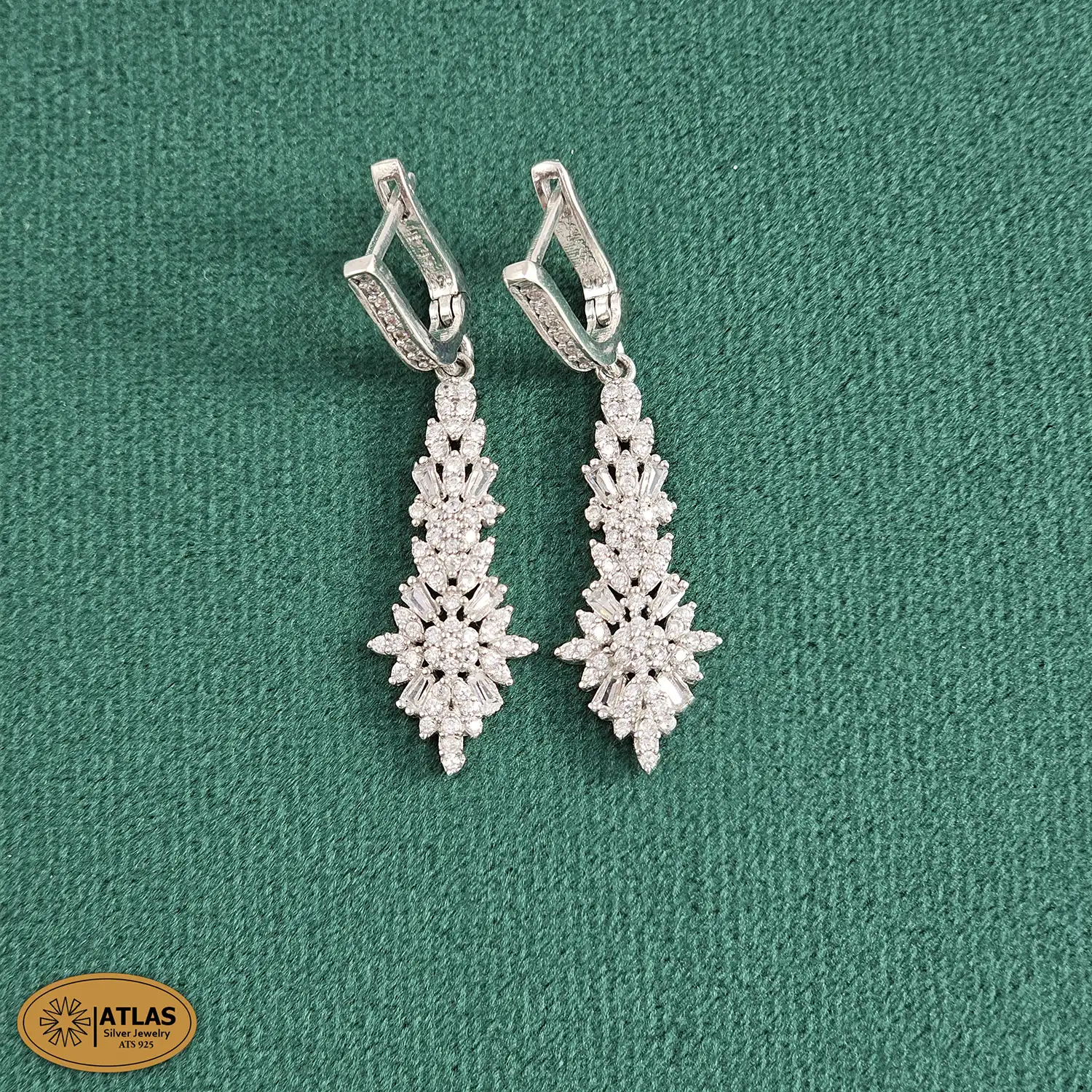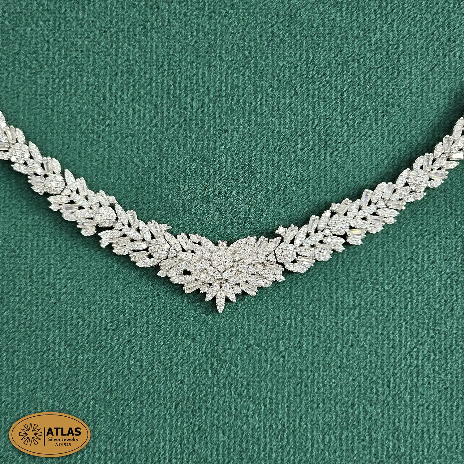 سرویس نقره جواهری زنانه با نگین های برلیان و باگت 31.1 گرمی نقره اصل 925