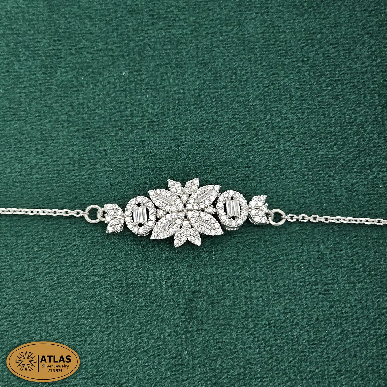 سرویس نقره زنانه زنجیری با نگین های برلیان و باگت 18.8 گرمی نقره اصل 925