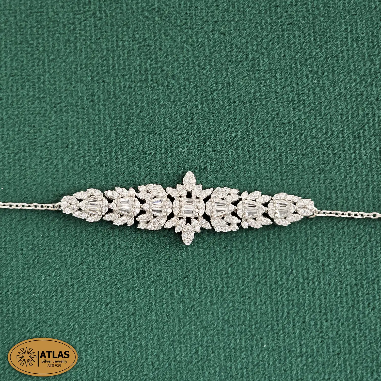 سرویس نقره زنجیری زنانه با نگین های برلیان 20.6 گرمی نقره اصل 925