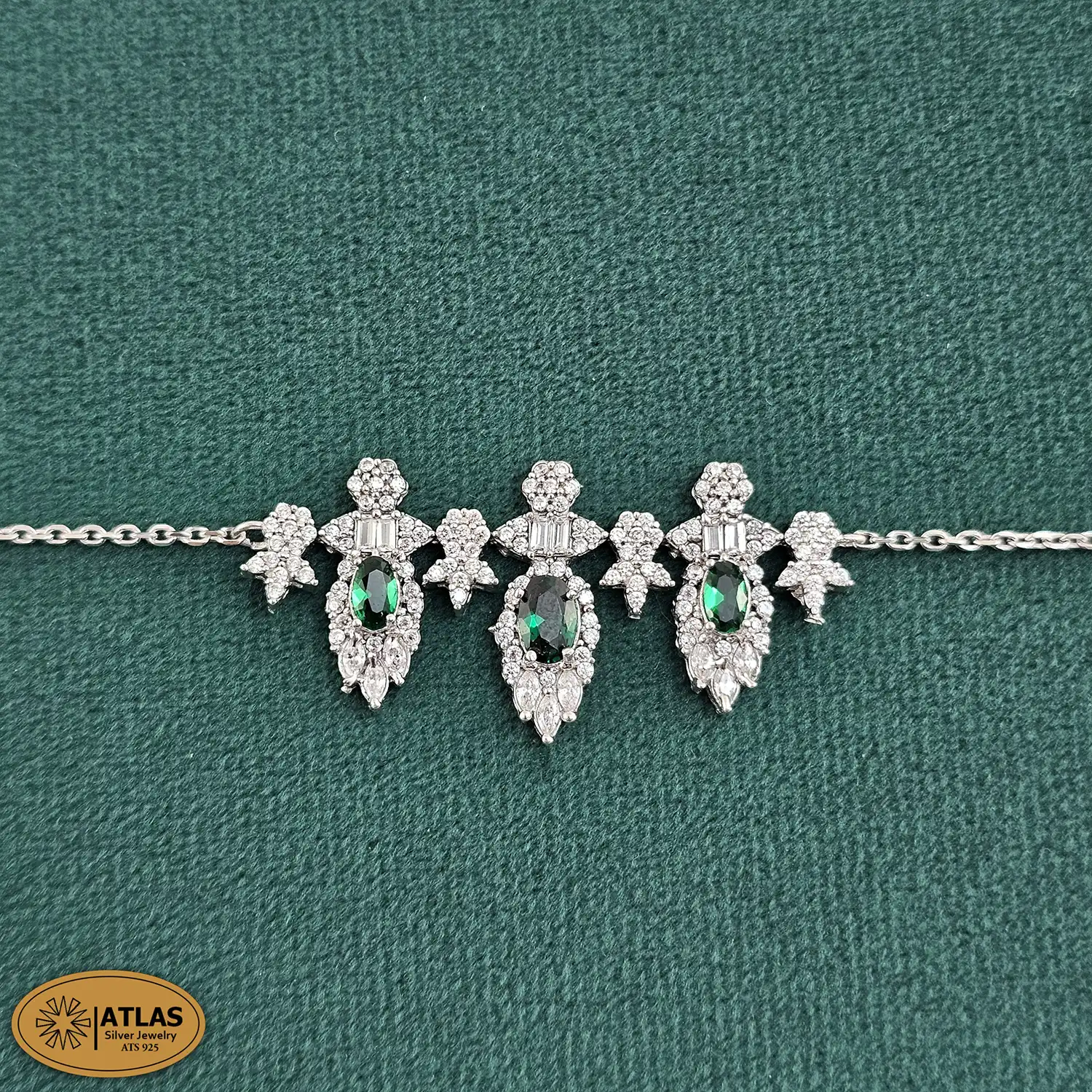 سرویس نقره زنجیری زنانه با نگین های برلیان و مارکیز، باگت 18.9 گرمی نقره اصل 925