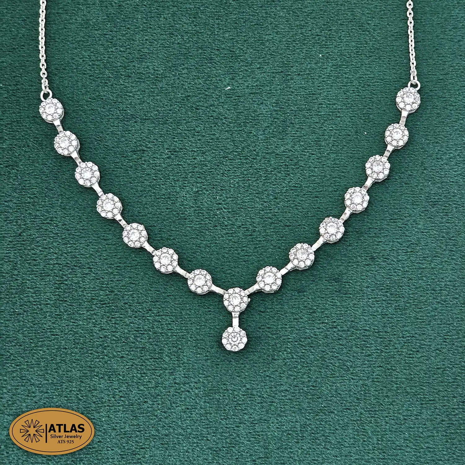 سرویس نقره فلاور زنجیری با نگین های برلیان 14.6 گرمی نقره اصل 925