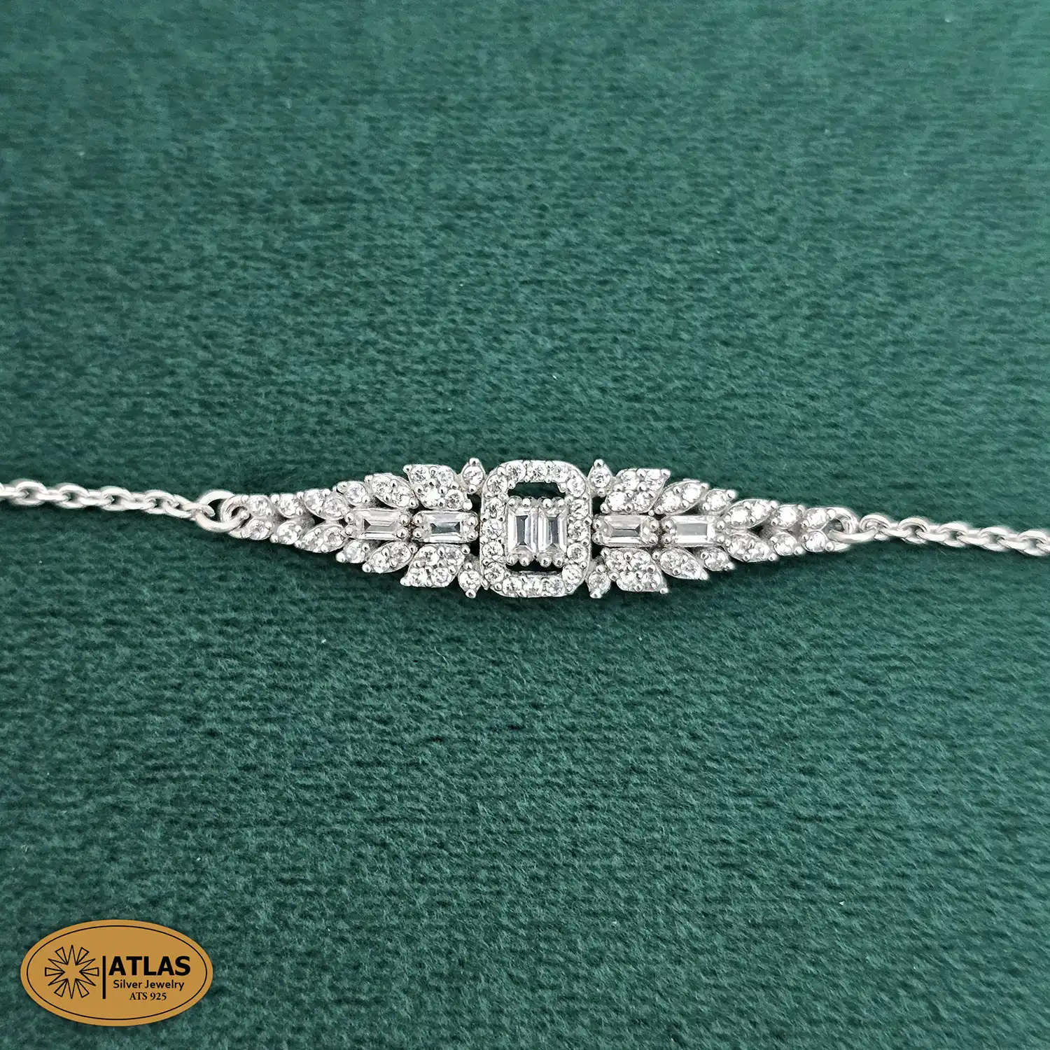 سرویس نقره زنجیری با نگین های برلیان و باگت 15.9 گرمی نقره اصل 925