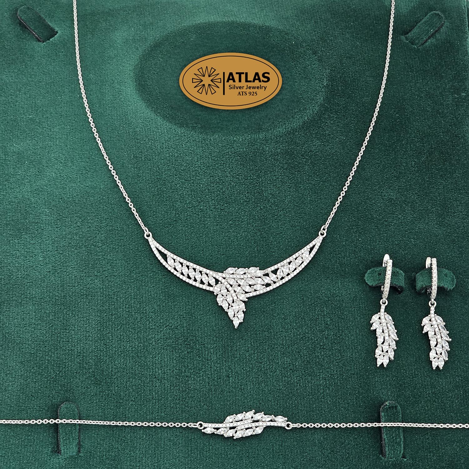 سرویس نقره زنانه میکرو با نگین های برلیان و مارکیز 16.1 گرمی نقره اصل 925