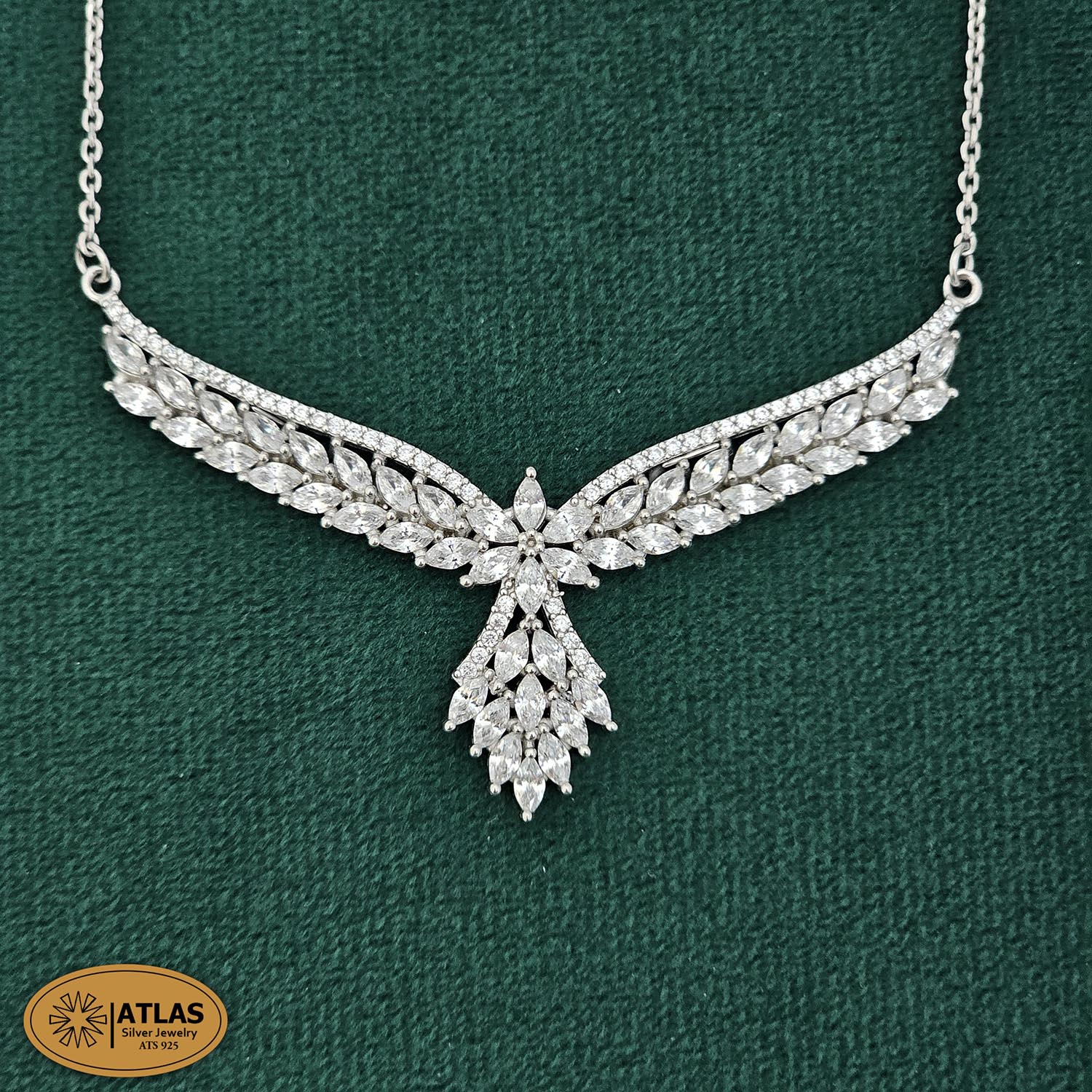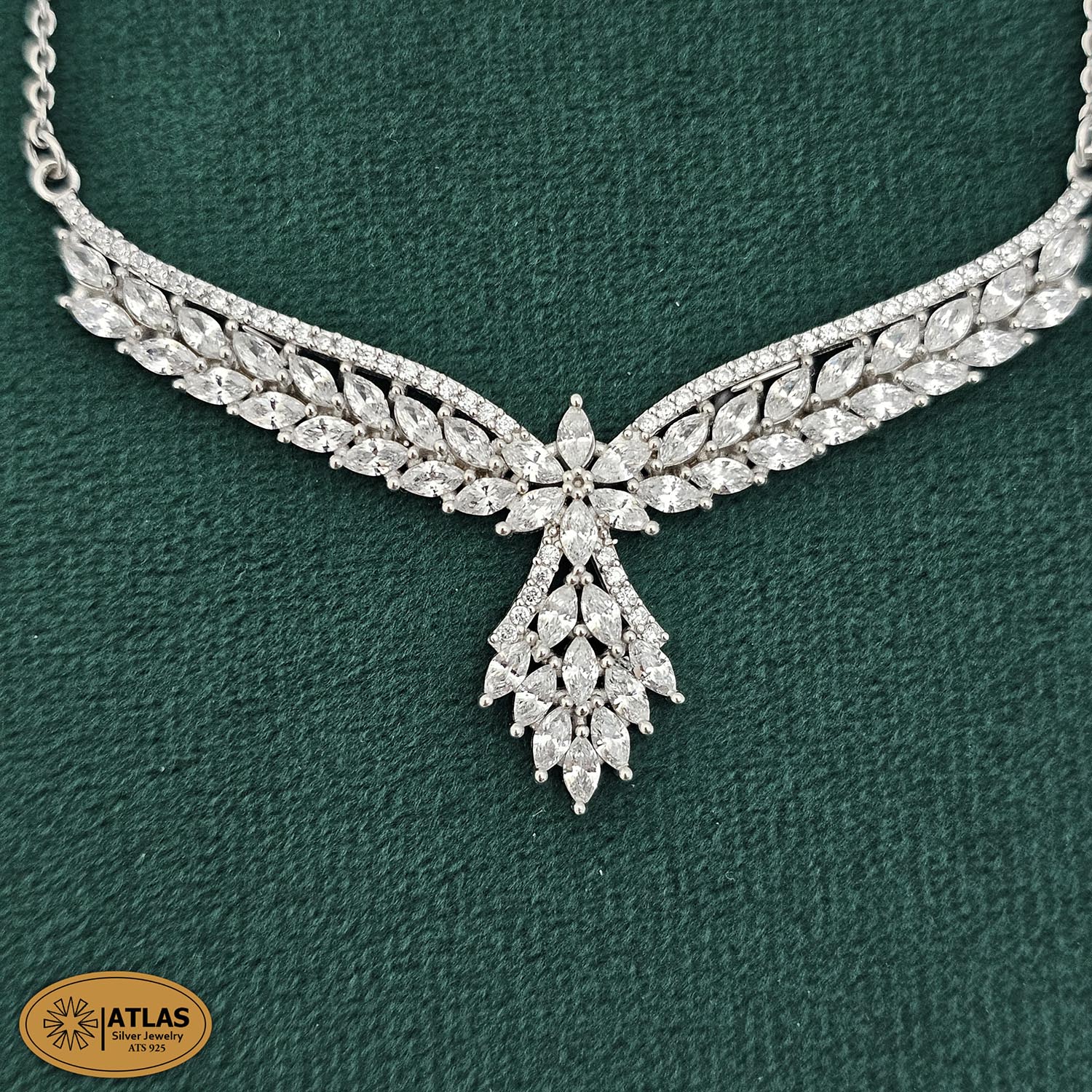 سرویس نقره زنانه میکرو با نگین های برلیان و مارکیز 16.8 گرمی نقره اصل 925