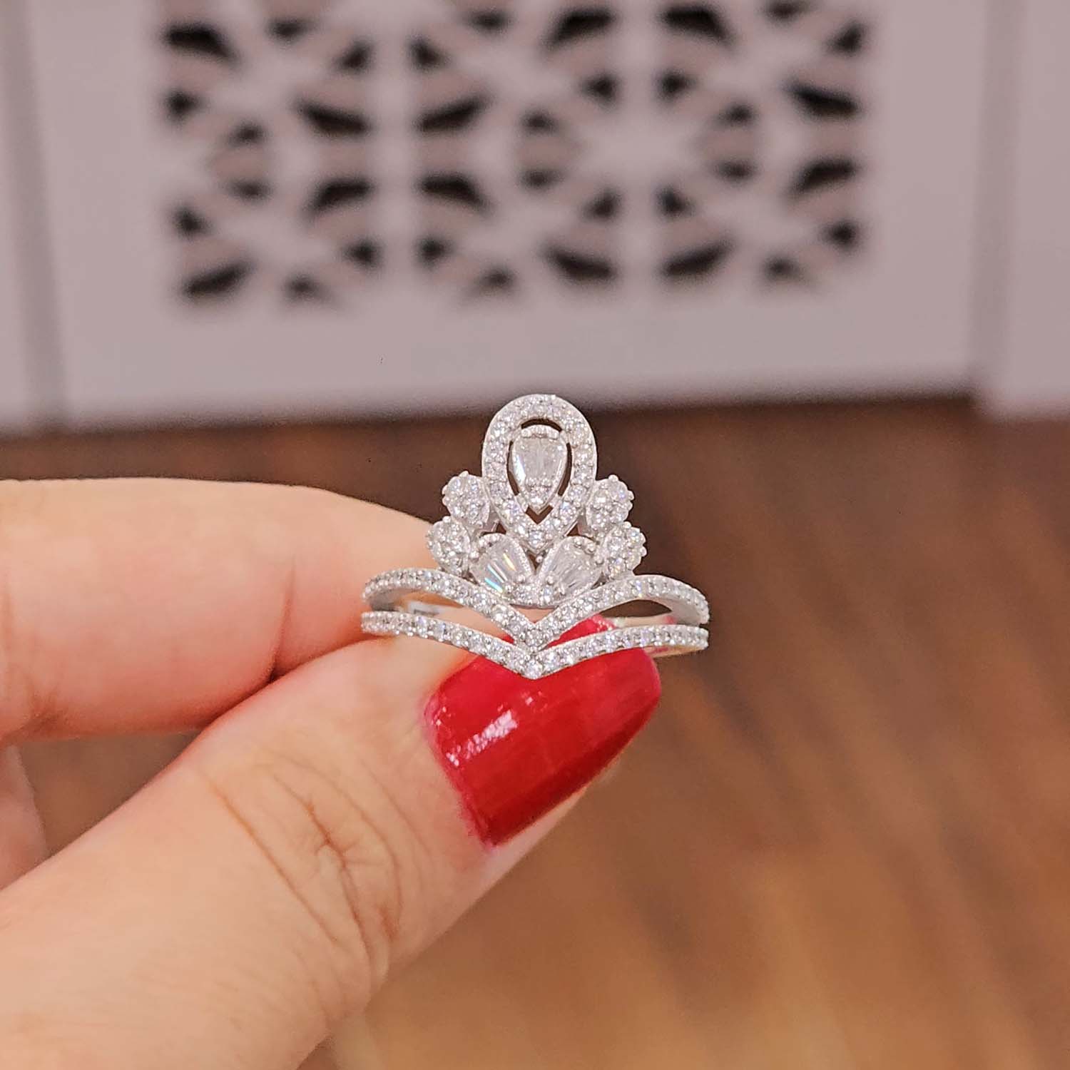 انگشتر نقره زنانه مجلسی با نگین های برلیان 3.7 گرمی نقره اصل 925