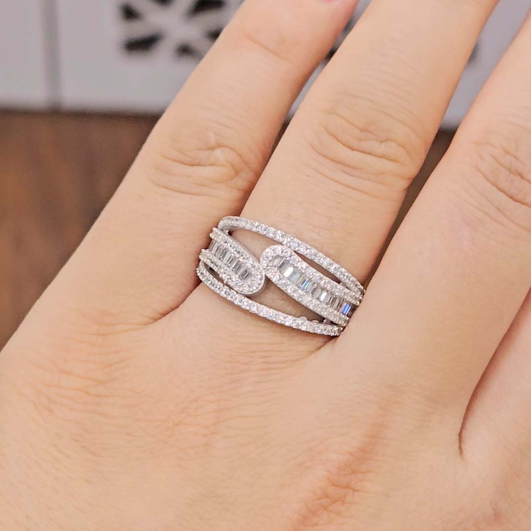 انگشتر نقره زنانه مجلسی با نگین های برلیان و باگت 4.9 گرمی نقره اصل 925