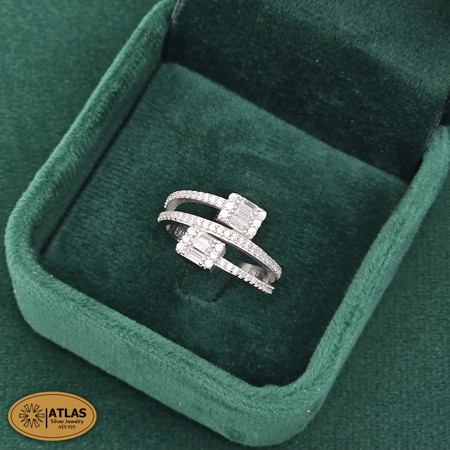 انگشتر نقره زنانه مجلسی با نگین های برلیان، باگت 3.6 گرمی نقره اصل 925