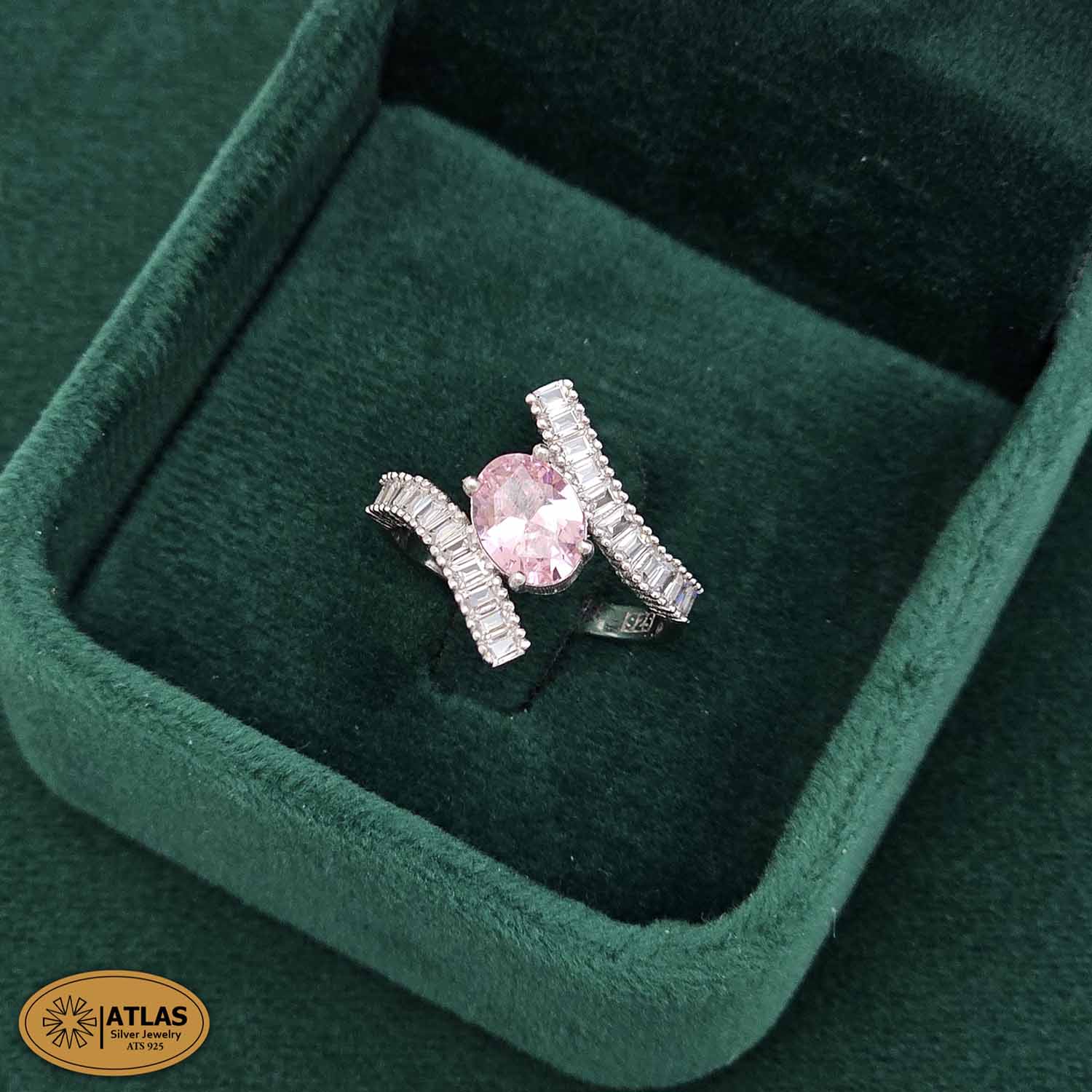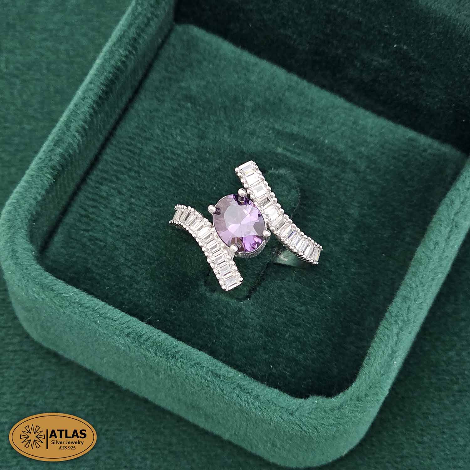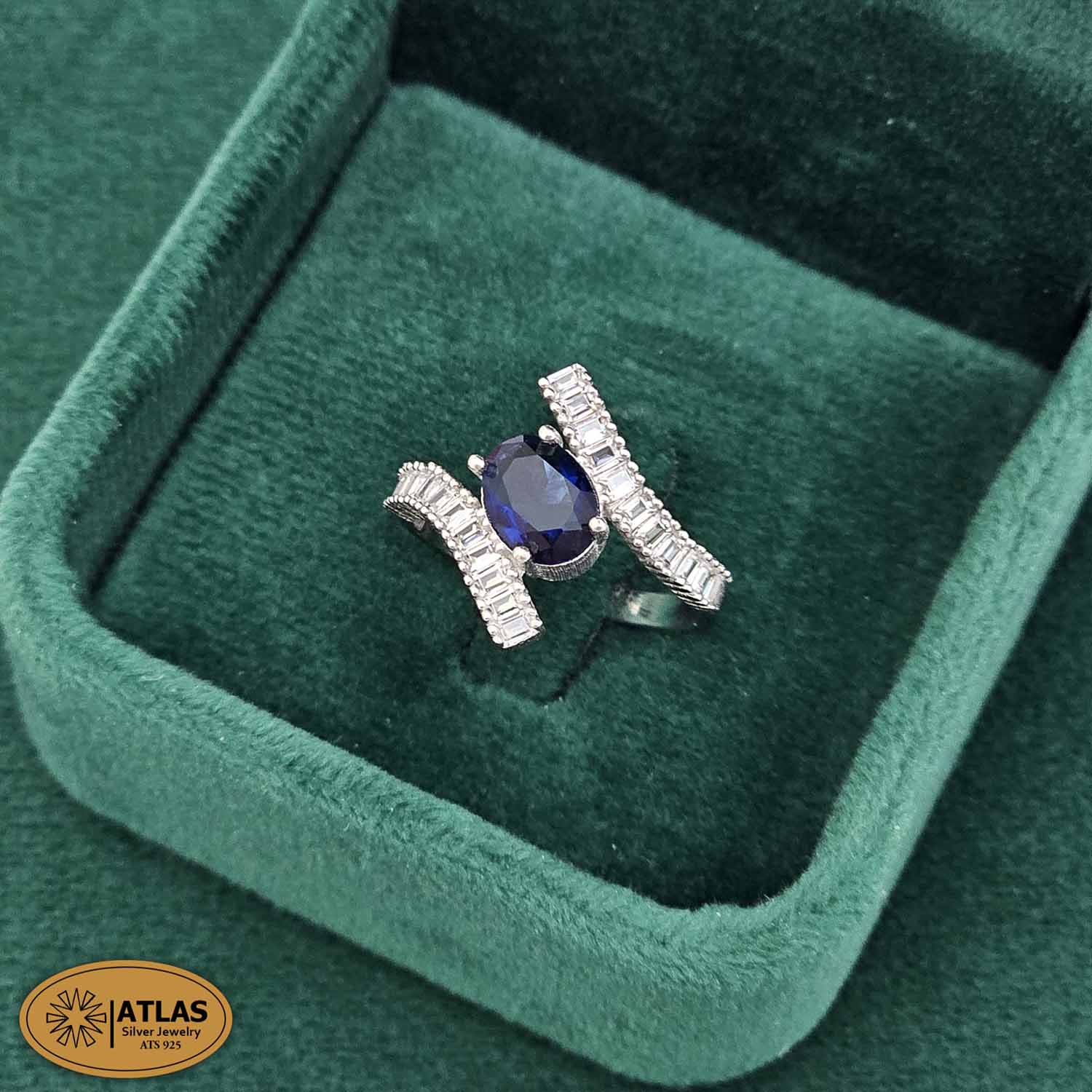 انگشتر نقره زنانه نگین دار با نگین های باگت 3 گرمی نقره اصل 925